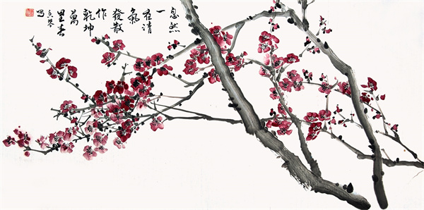 董香琴笔墨的妙处,正在于既有文人画的笔墨风骨,又以女性视角注入柔婉情致,将梅、竹、牡丹、水仙同置一瓶,以 “清供” 之式融 “四君子” 与 “富贵花”,是传统意象的当代重构。她以墨为骨、以彩为韵,让写意花鸟既守 “古意”,又生 “新态”。