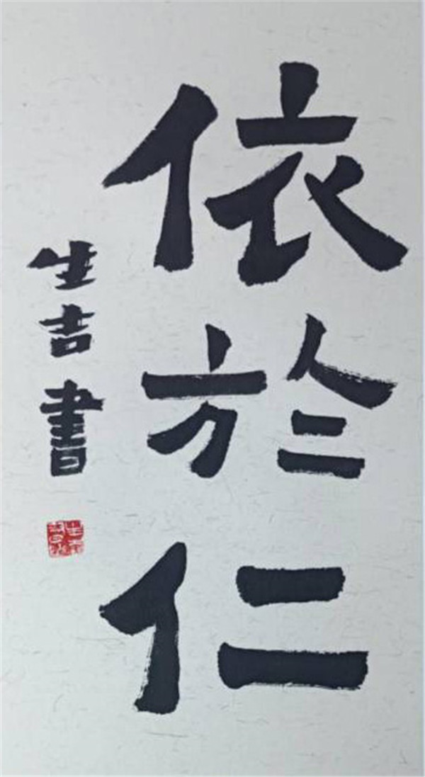 唐生吉, 字吉人;别署求是子;号借古楼主、八仙村民等。中国书法家协会会员、中央国家机关书法家协会会员、北京书法协会会员、中国老年书画学会理事﹑中国书画家联谊会新文艺群体书画家工作委员会委员﹑中国楹联学会书法艺术研究会会员、中国硬笔书协注册高级讲师、国家高级美术师等。