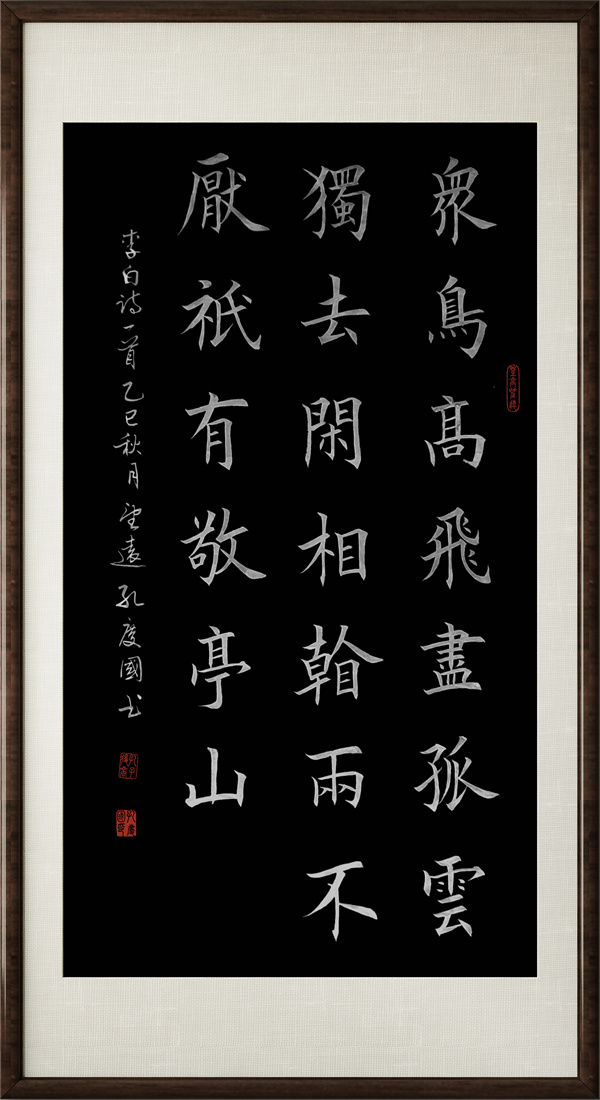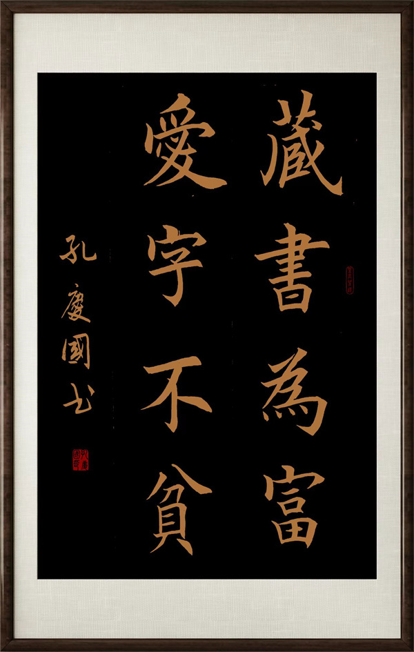 2019年10月,经中国国画院常务委员会投票推荐,中国国画院研究决定,设立由孔庆国本人名字命名的个人书法艺术名家工作室,特予授牌、颁发授权证书。近年来,曾多次参加全国书法大赛,并获得各类奖几十项,与此同时,也得到了专家的好评和认可。2021年8月,在环球网络美术馆举办了《中国当代书画家上网工程》个人书法展览,浏览量达20000余人次。部分作品先后入编《全国诗书画家精品集》、《第二届全国中老年书画大赛获奖作品集》、《炎黄诗书画印艺术精品集》、《爱我中华金誉杯全国书画展精品集》、《第三届全国中老年书画创作交流研讨会获奖作品选集》、《江山颂全国诗书画印精品集》、《翰墨丹青中国梦-2016企事业职工书画大赛作品集》、《纪念毛泽东主席逝世40周年书画精品文集》。有的作品还被平北抗日战争纪念馆、中国国画院三峡美术馆、中国书画发展研究会、北京军天书画院等专业机关和民间收藏。近年来,被国家社会艺术团体组织授予:全国百强书画名家、共和国人民艺术家、中国书画百杰、中国红色艺术家、书画中国梦-优秀艺术家、中国当代杰出书画艺术名家、全国优秀中老年书画家、中国书法百强、新时代书画品牌领军人物等称号。