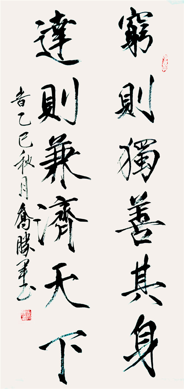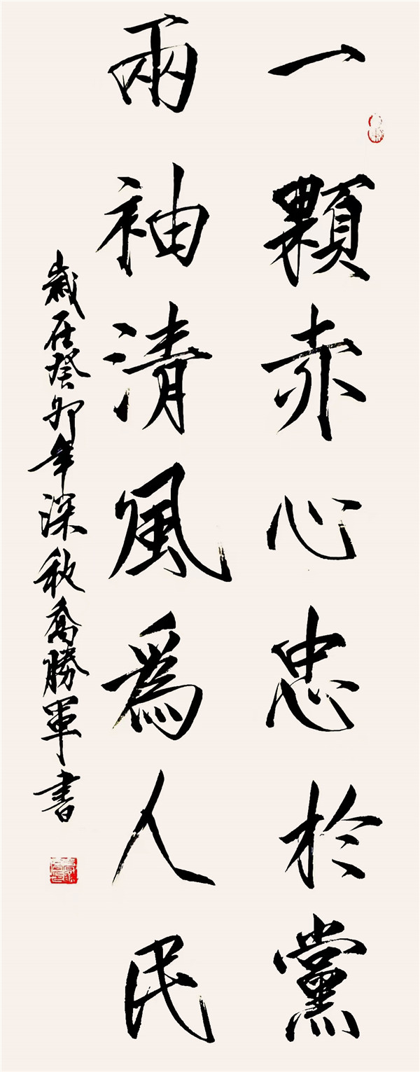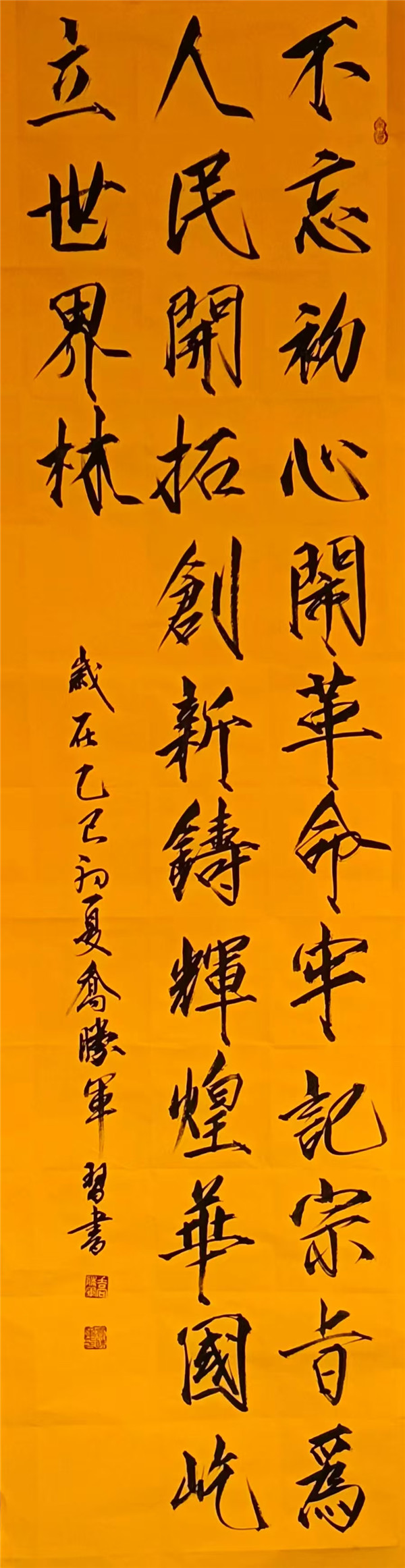 2017年9月参加中国人民解放军建军九十周年书画邀请展中行书:爱国敬业,诚信友善作品荣获二等奖。