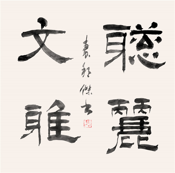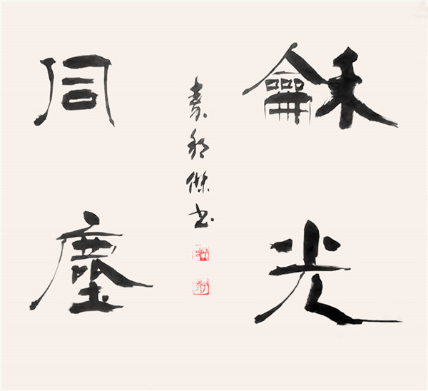 我是通过参加一些活动,接触到秦邦杰先生的书法作品的,是 他的作品吸引了我,使我对他有了深刻的印象。 观赏其作品,虽少字不失大器,古朴厚重,雄秀并举,结构天 成,作品于沉厚刚劲之中又见柔婉灵动,达到平和的境界,丝毫不见 浮躁的张狂,在书法中融入道家哲学,让人在笔墨中观人生百态,悟 人生之理,见人之真性情。