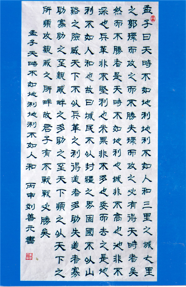 刘善元,男,江西人,字衍之,斋号明德系北京环球翰墨文化艺术院副院长,画圣吴道子艺术馆名誉馆长,国家一级书法师、中国书法院高级书法师、北京华夏国艺书法院高级书法师,中国书画艺术创作中心研究员,中国书画家协会理事、名誉主席。书法作品在全国范围(含香港)多次参展入编刊载上报,登录国际专家交流网、中国书法网、中国书法院网、北京环球翰墨文化艺术院网、中国诗书画家网、获得国学传承奖、兰亭百花奖“一带一路”全国书法家百米长卷创作工程成就奖等奖项。多次荣获“实力派书法家”称号,“中国书法百杰人物”称号、“新中国杰出书法家”称号和共和国人民艺术家称号。