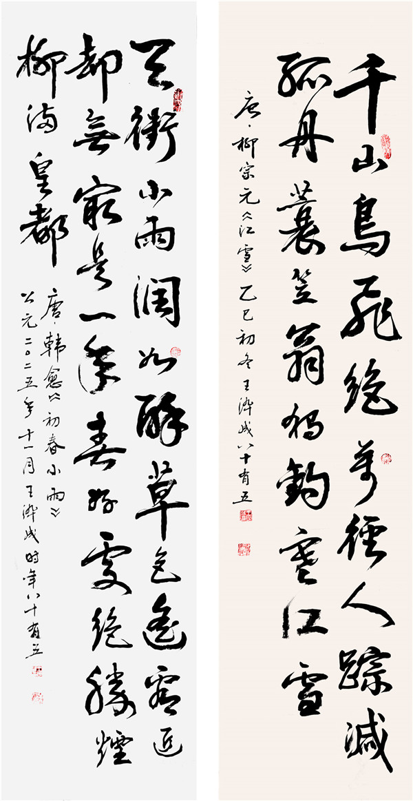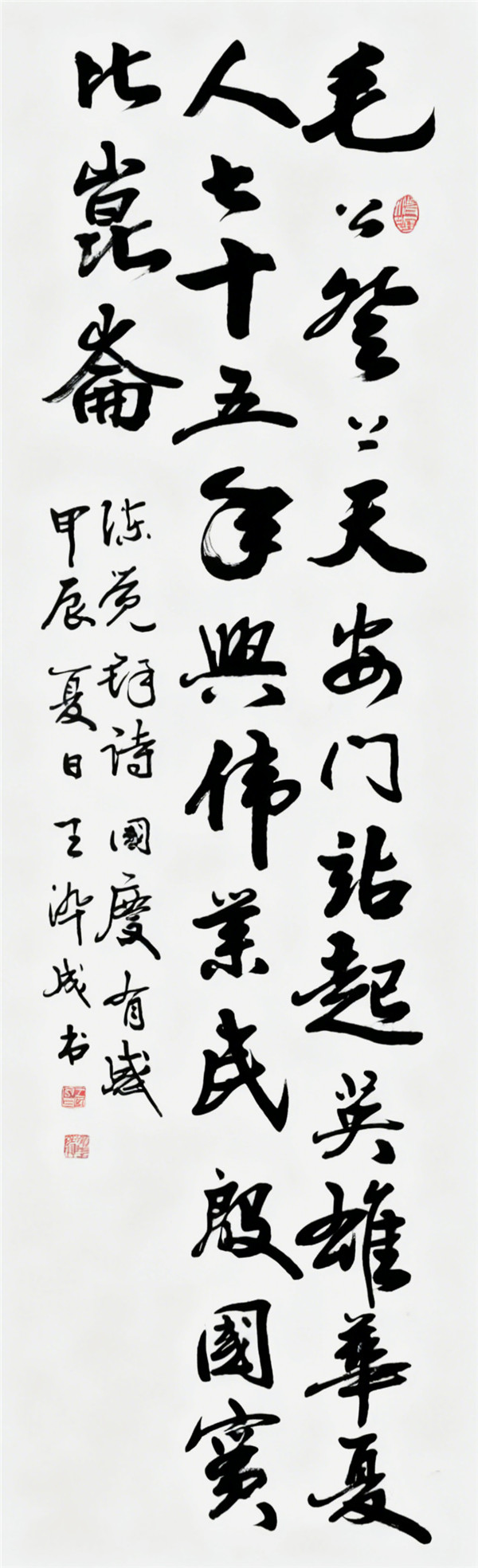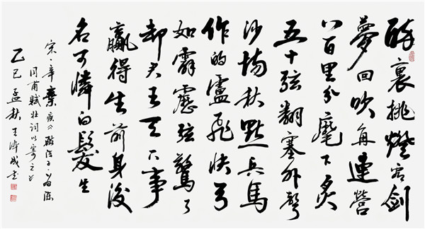 从书法的习成与传承角度来看,王先生历练翰墨有“法需师授”的追求,王先生师从书法大家蒋兴国、蔡德林磨砺书道,或得入室之教化,或得精义之点拔,让他的书法修炼得到了取法于上的机缘。又因为王先生有临池不辍、深师碑帖的执着,经过对历代法帖的心追手临,终于领悟了书道之真谛,写得一体遂心应手的金书锦字!既有传承的精深,也有创新的精彩,是当代书坛用传承与创新作为双驱动力不可多得的书法家!