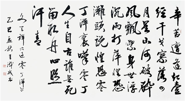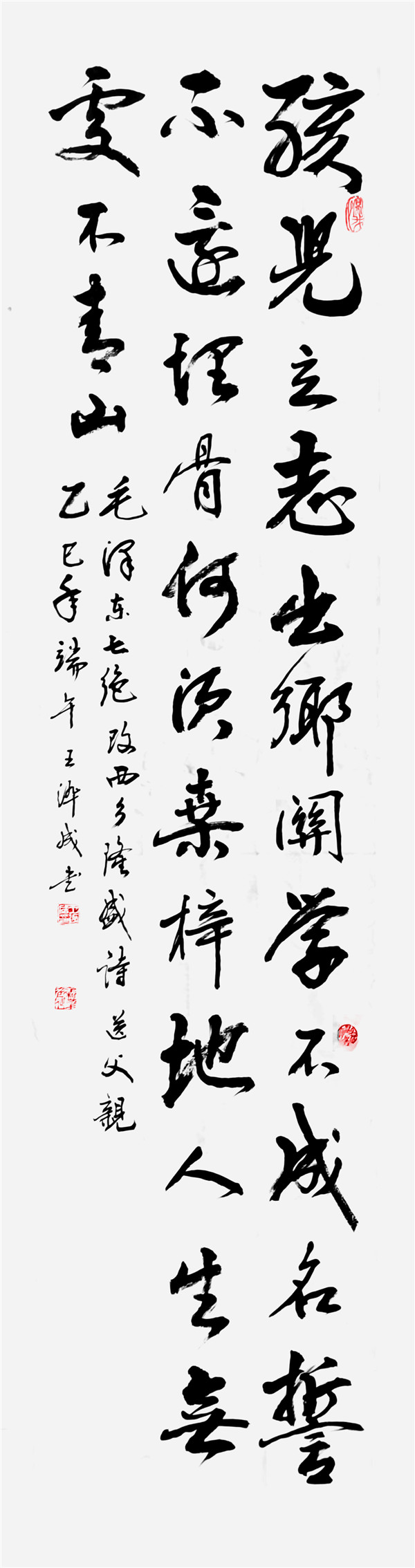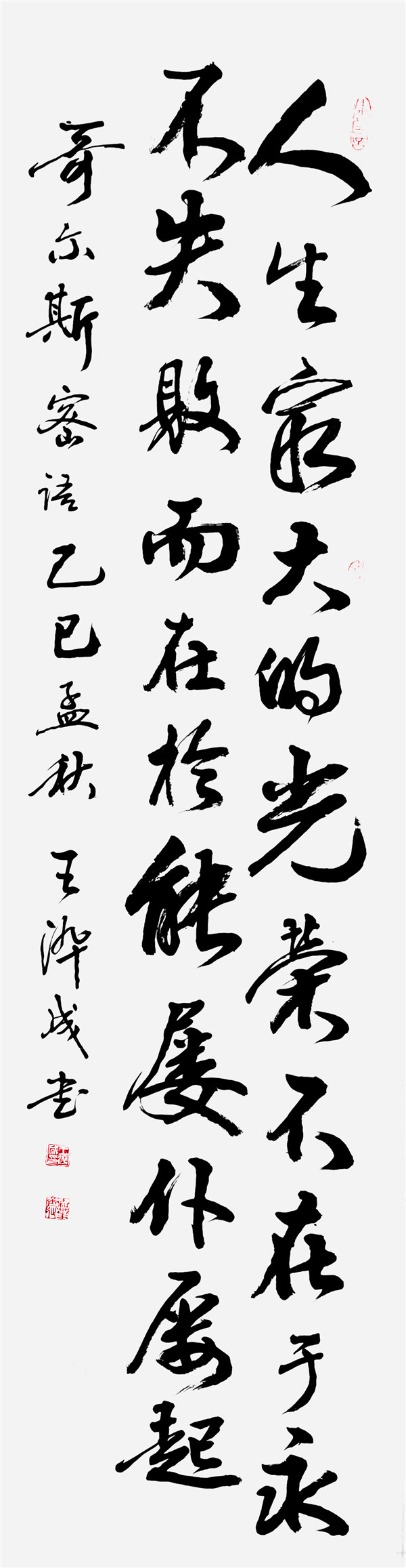 书法家王淬成先生,有德者贤修,有长者风范,无论艺术成就还是人格修养,都拥有与众不同的个性。德艺双馨者作书,必然让书法作品承文载道,写出传统文人“先天下之忧而忧,后天下之乐而乐”的人文内涵,令每一件书法作品既包含技法的精研,也彰显思想的升华!由是,观览王先生的书法作品,常有感叹:落笔写文化,起笔颂时代;为天地立心声,为往圣继绝学!