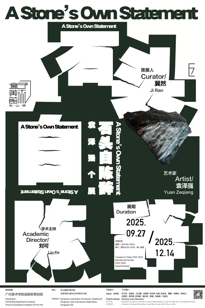 9月27日,“石头自陈辞”袁泽强个展在松山湖盒子美术馆开幕。本次展览由冀然担任策展人,刘可任学术主持,呈现了艺术家袁泽强创作系统中图像的生成机制与意义转换,是袁泽强阶段性探索成果的展示。